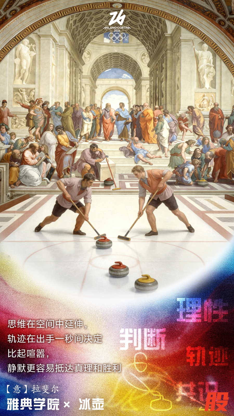 我们选取了文艺复兴画派中的代表性作品,借助AI技术,将其中的姿态、空间与叙事,与冬季运动项目的动作逻辑相对应,呈现身体在不同时代持续书写的运动之美。